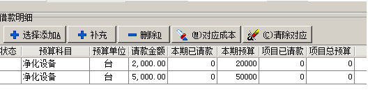 在請款過程中, 如果出現(xiàn)預(yù)算以為的請款,如:運費、裝卸費等,可以利用補(bǔ)充按鈕來進(jìn)行補(bǔ)充。