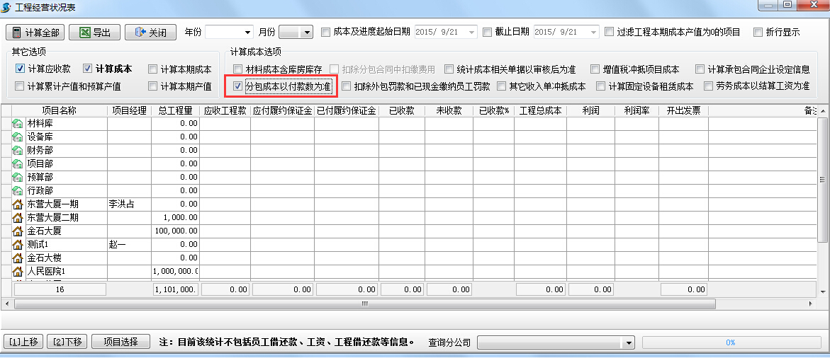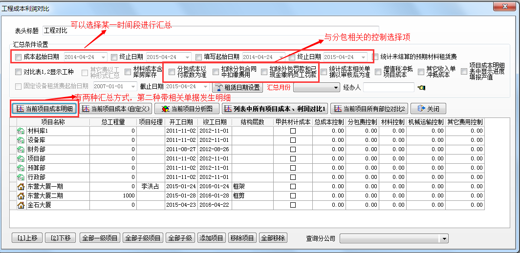 查詢成本方法:在【工程管理】模塊?【項目成本利潤】選好匯總項目生成項目成本列表。如下圖