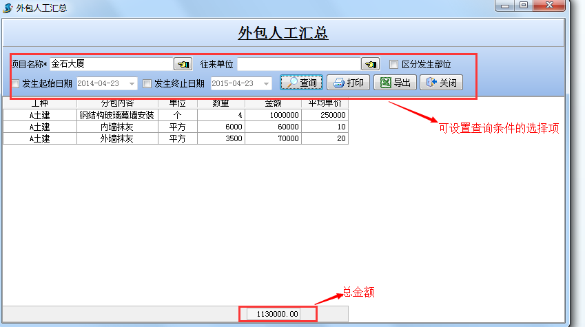 (2)【外包人工匯總表】是以【分包內容】匯總查詢出某項目的外包人工成本。