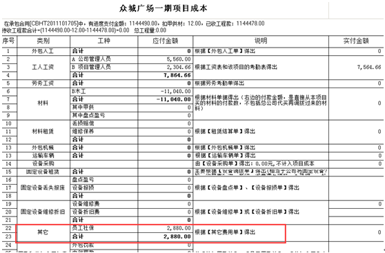 其他費(fèi)用單添加完成并付款之后,該項(xiàng)的成本會一其他費(fèi)用體現(xiàn)在項(xiàng)目成本中,如圖: