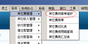 其他費(fèi)用預(yù)算單,在工程項(xiàng)目管理軟件在財(cái)務(wù)菜單中第一項(xiàng)【其他費(fèi)管理】,【其他費(fèi)預(yù)算維護(hù)】中創(chuàng)建。