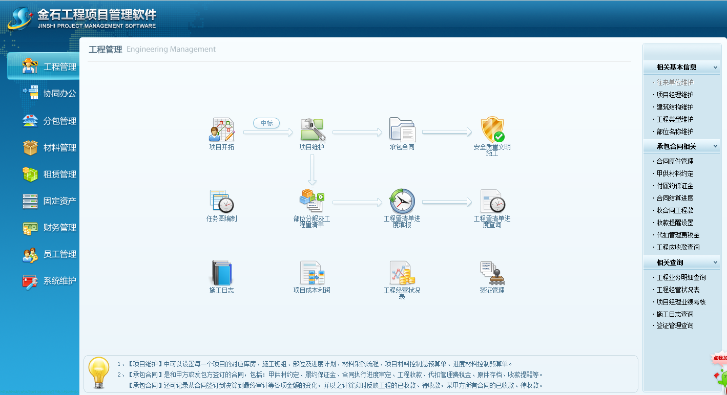 工程項目管理就是在一定的條件和基礎上,為達到一定的目標和取得一定的成效,而采用科學計劃和動態分析手段(可利用建筑工地管理系統),以盡可能小的投入而獲得盡可能大的效益。目前,許多大型工程項目具有工期緊張、技術復雜、規模巨大、交叉施工的特點,因此,現代工程項目中,如何利用建筑工地管理系統有效配置原料和人力資源、控制生產和施工過程,是工程項目管理亟須解決的問題。在建筑工地管理系統中管理過程中實現減少投資風險、細化管理過程、增加成本效益、加強信息溝通,客觀上要求工程項目管理人員提高管理水平、增加技術含量、增強競爭能力,有效運用各種知識和手段來控制項目的操作和運行過程。事實上,對工程項目的管理很大一部分也是對信息的管理,如何有效地掌握工程項目中各種有效信息,全面分析這些信息的特點,快速準確地對信息進行抽取、加工和分類,很大程度上依賴于信息管理的方式和手段。目前,許多大型項目紛紛采用信息化的管理手段,通過采用建筑工地管理系統來優化項目管理過程,取得了良好的效果。