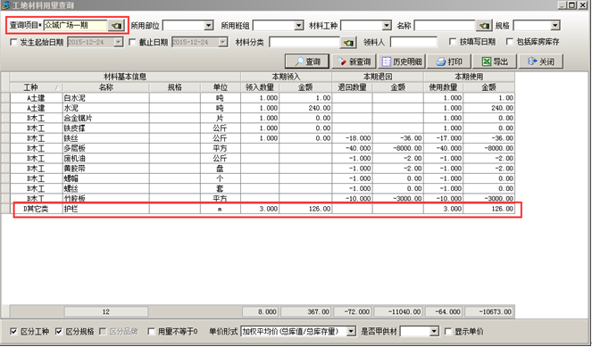 項目成本查詢,如圖:
