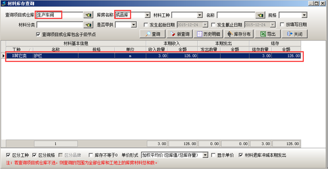 材料采購完成之后可在對應的材料庫中查到相應的庫存,如圖: