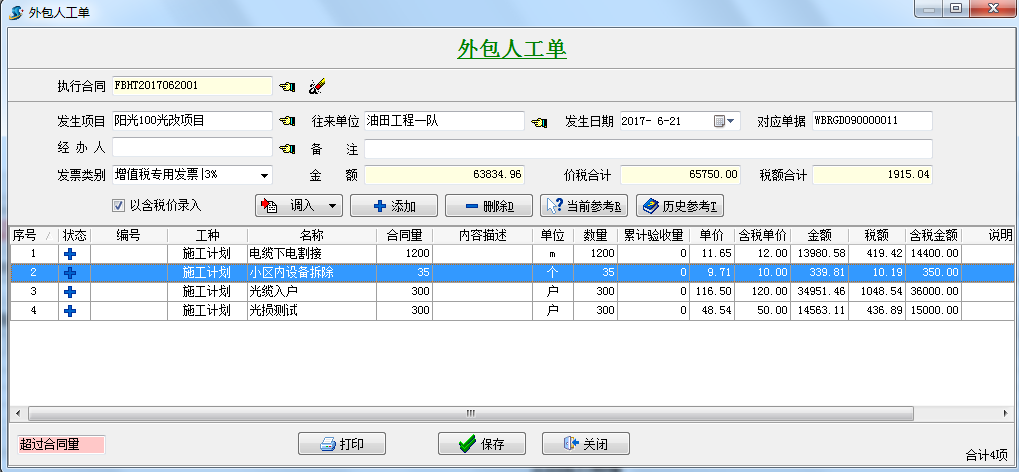 工程項目管理軟件--施工計劃單