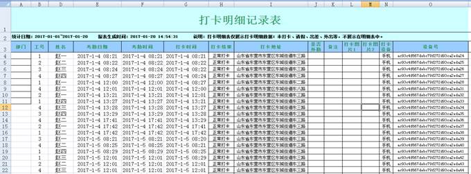 選擇好時間段,和考勤員工后,點擊查詢按鈕,出現如下圖所示