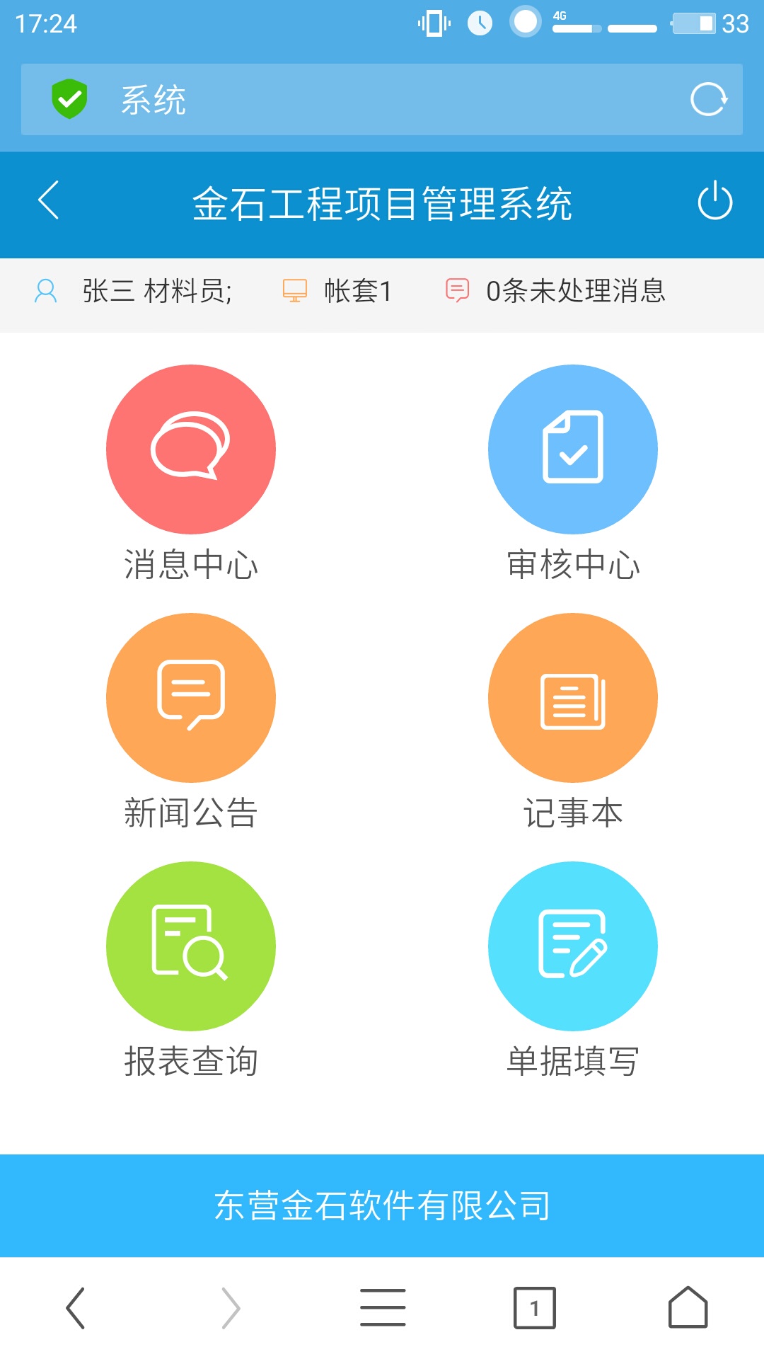 (3) Browser端主要應(yīng)用在移動設(shè)備終端,目前已經(jīng)與微信無縫整合,只需安裝微信就可正常使用各項功能,主要用于業(yè)務(wù)單據(jù)審核、微信消息提醒、現(xiàn)場進(jìn)度填報、部分報表資料文檔查詢、部分單據(jù)填寫等。