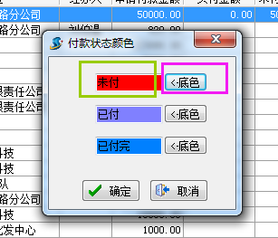 如下圖:點“未付”兩個字設置字體的顏色;點“底色”設置背景色
