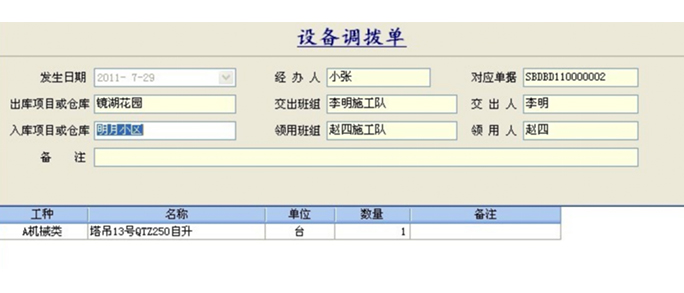 設(shè)備調(diào)撥單是表現(xiàn)設(shè)備流動(dòng)的重要依據(jù),如果不想出現(xiàn)設(shè)備查無所蹤的情況,企業(yè)一定要注意重視工程管理系統(tǒng)中設(shè)備調(diào)撥單的運(yùn)用。