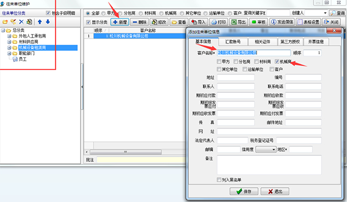 所謂的往來單位維護(hù),主要將機(jī)械設(shè)備的供貨商信息錄入系統(tǒng),方便以后進(jìn)行維保、二次采購(gòu)等操作。操作界面如下: