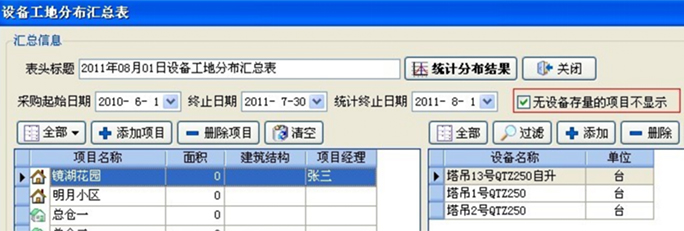 除了設(shè)備調(diào)撥單列表之外,系統(tǒng)中還有更全面的設(shè)備工地分布表。可以非常直觀的看到企業(yè)的固定資產(chǎn)在各個(gè)工地的分布情況。