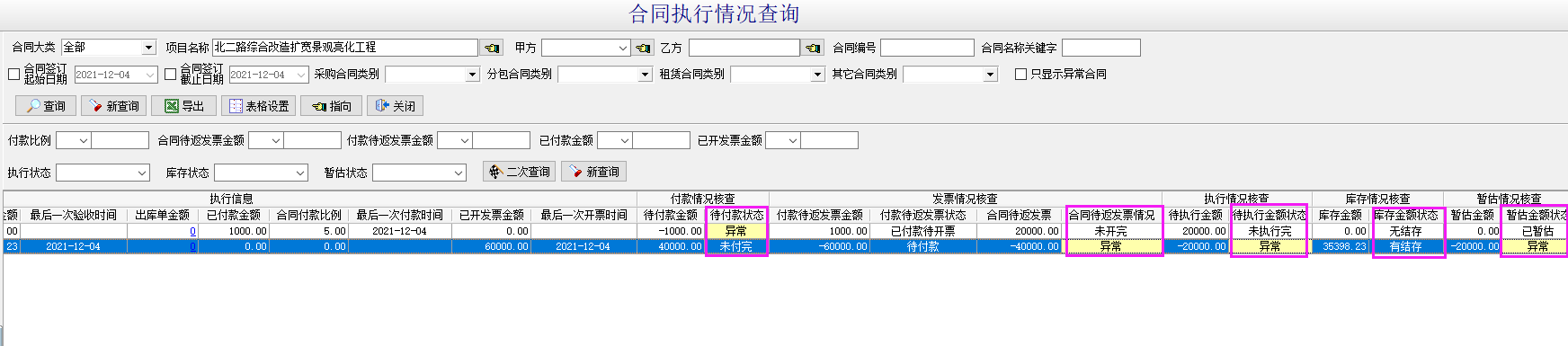 待執行金額:大于0;顯示“未執行完;等于0,顯示:已執行完;小于0,顯示“異常