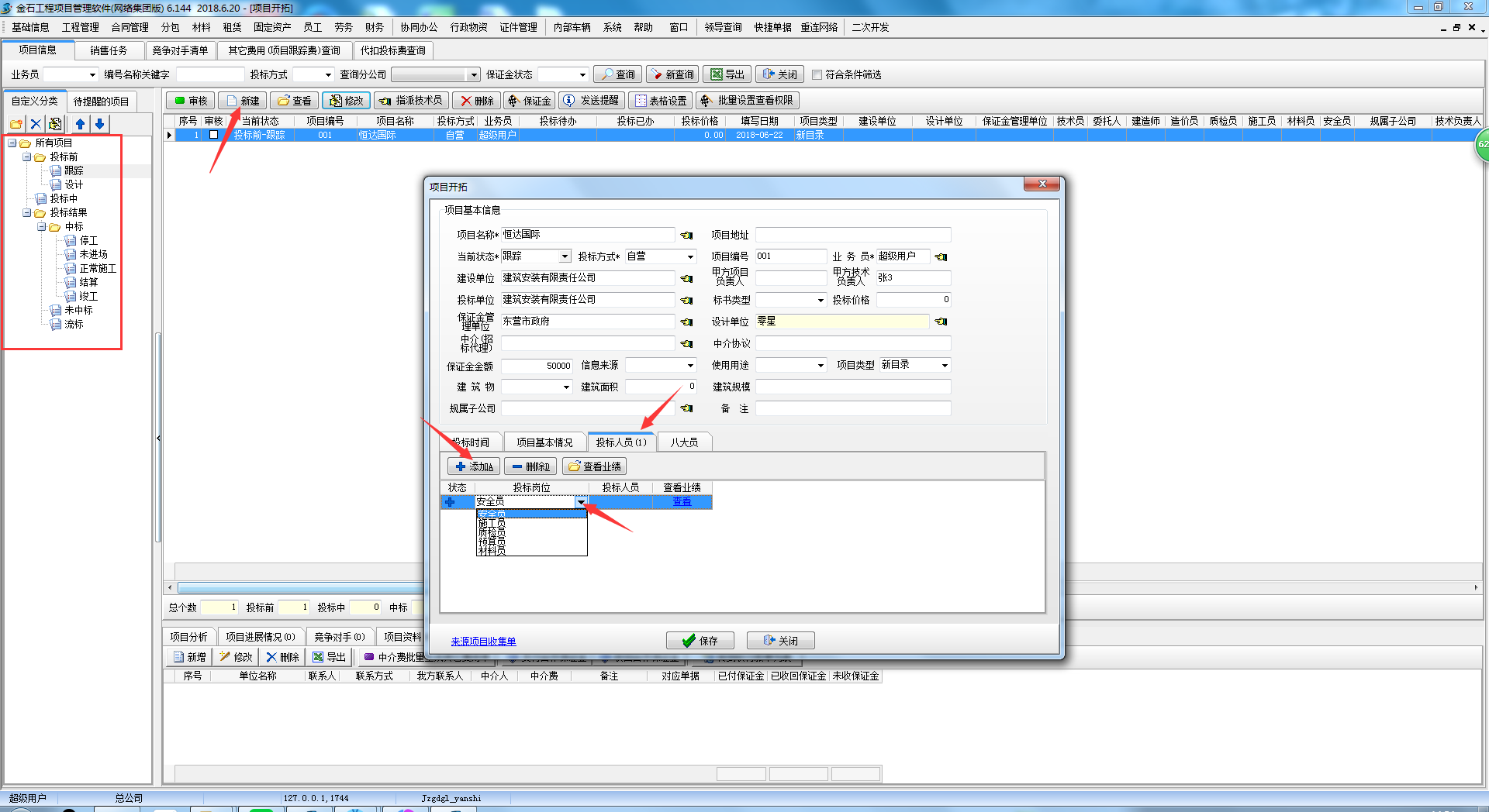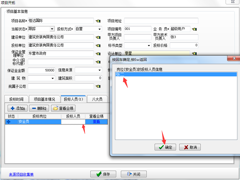 新建投標項目時,選好分類,填好投標項目基礎信息,依次添加投標人員,如下圖: