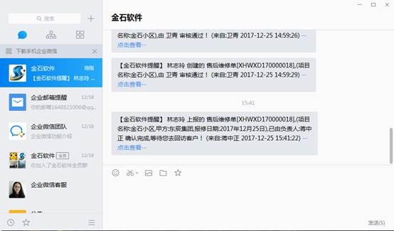 此時(shí)負(fù)責(zé)人會(huì)收到微信提醒,提醒其對(duì)該項(xiàng)目進(jìn)行跟蹤及維修情況的必要登記,如下圖