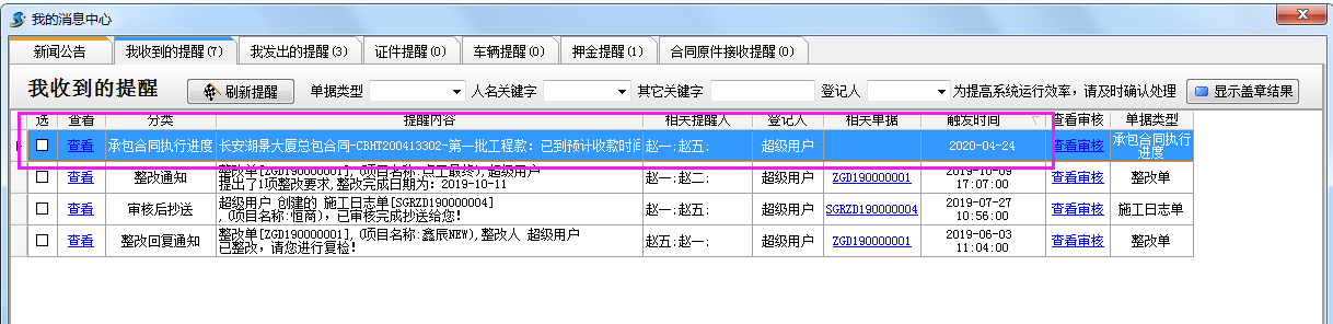 承包合同回款提醒