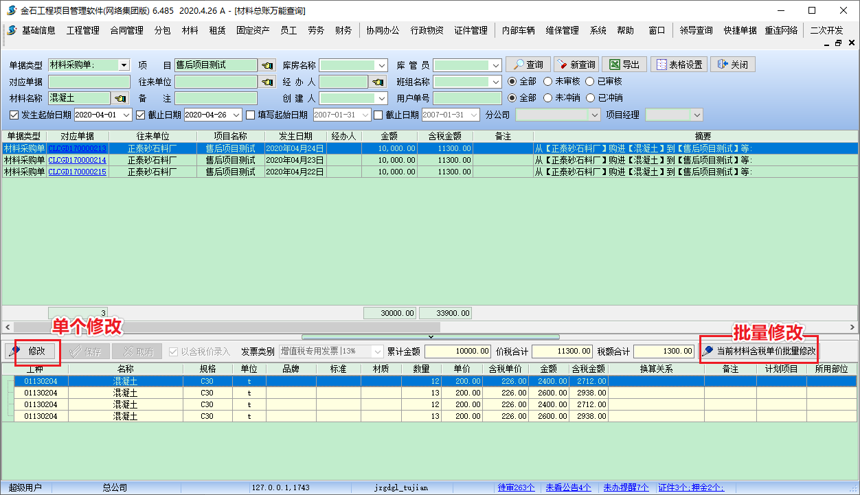 2 批量修改(適用于材料名稱規格單位品牌標準材質完全一致的情況)