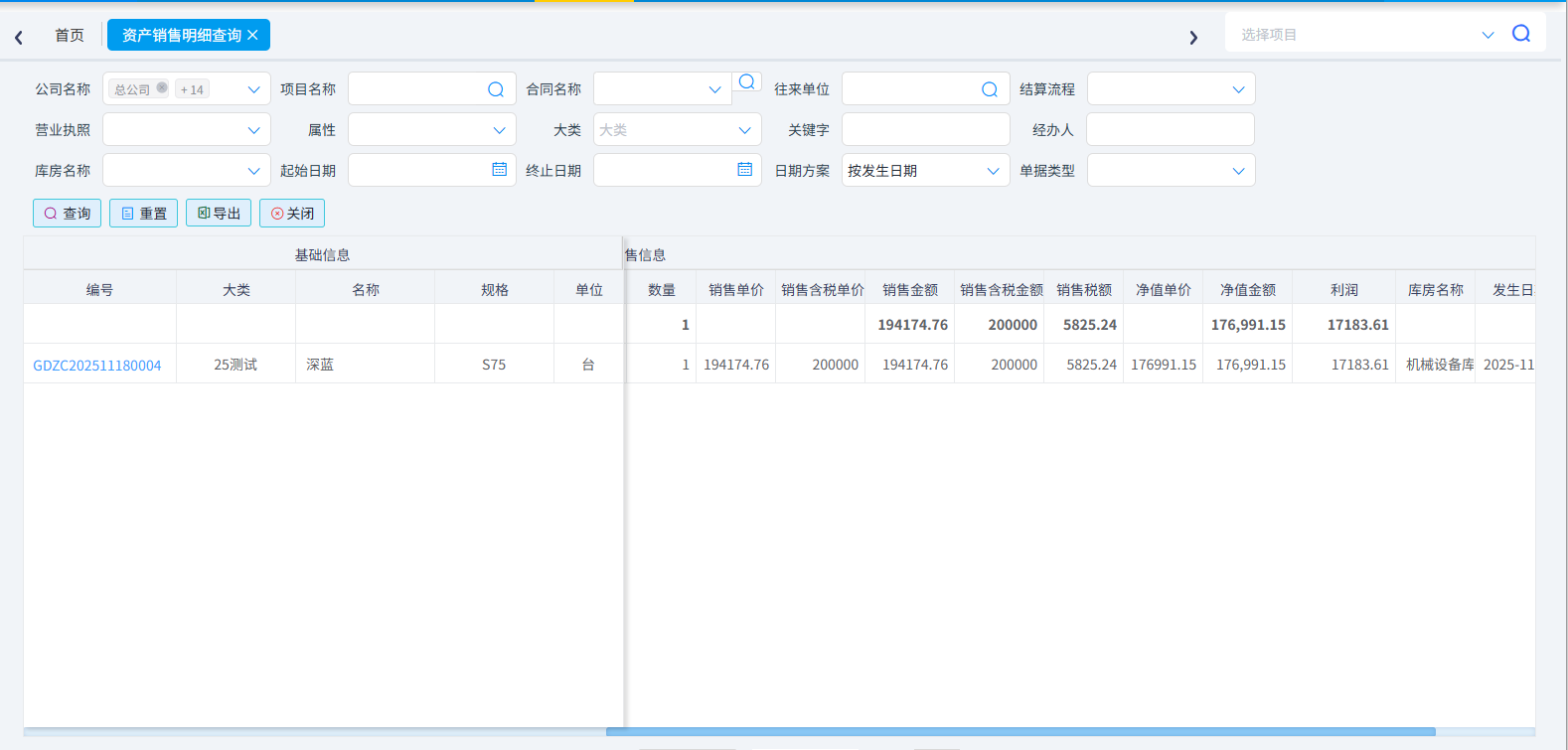 (3)資產(chǎn)銷售明細查詢