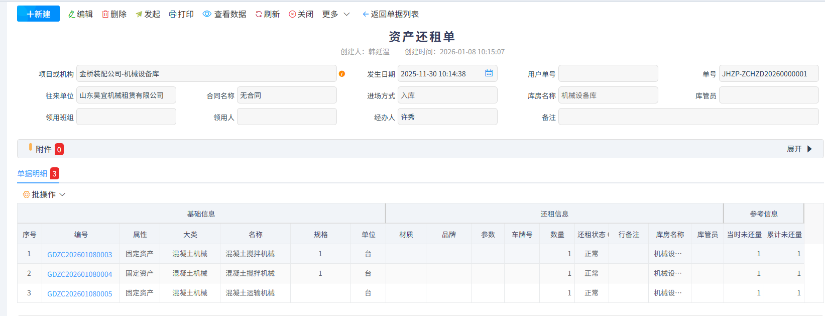 系統(tǒng)對內(nèi)出租與對外出租分開展示一目了然且支持在查詢內(nèi)快捷生成資產(chǎn)還租單
