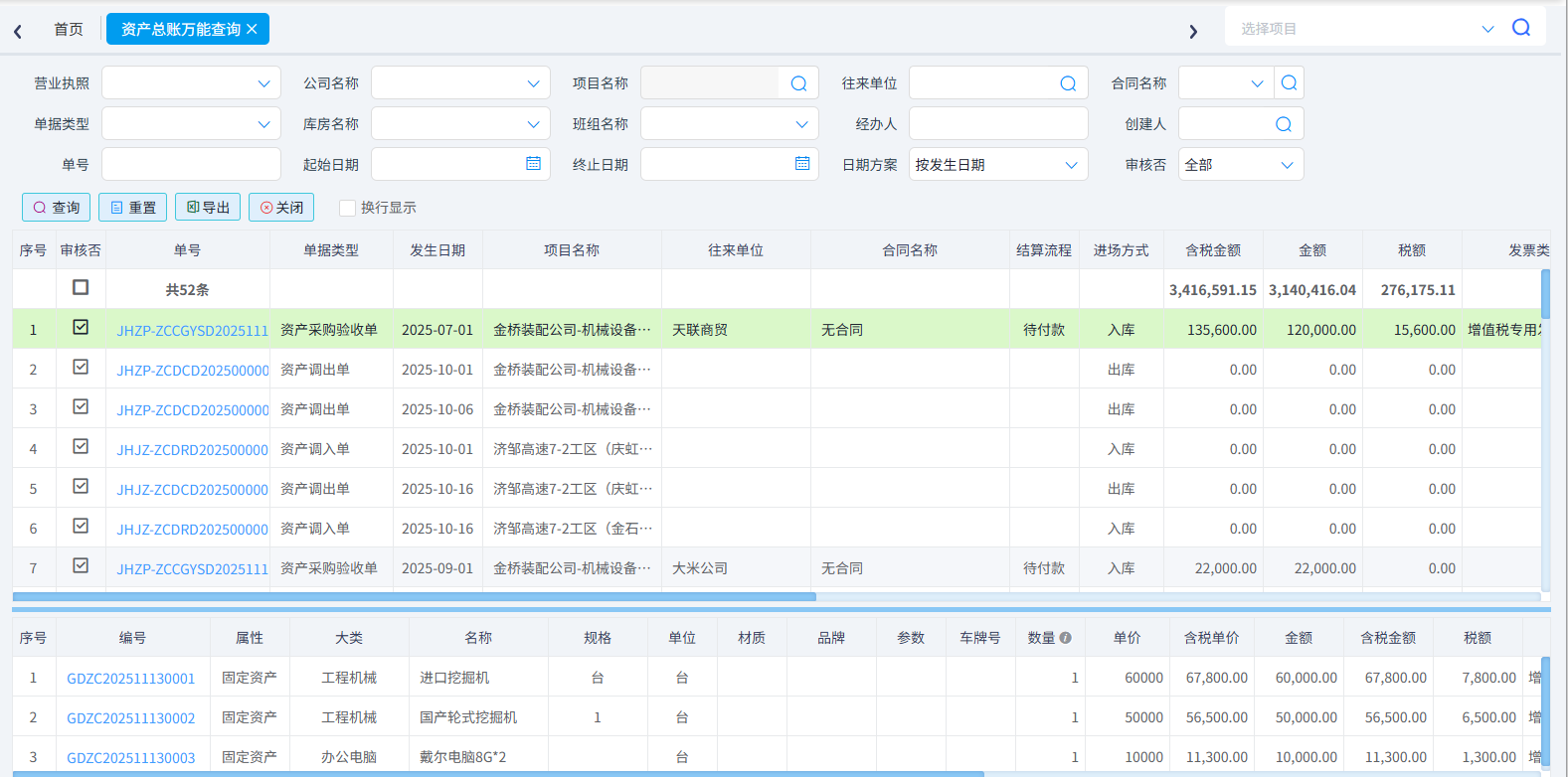 (2)資產(chǎn)明細萬能查詢