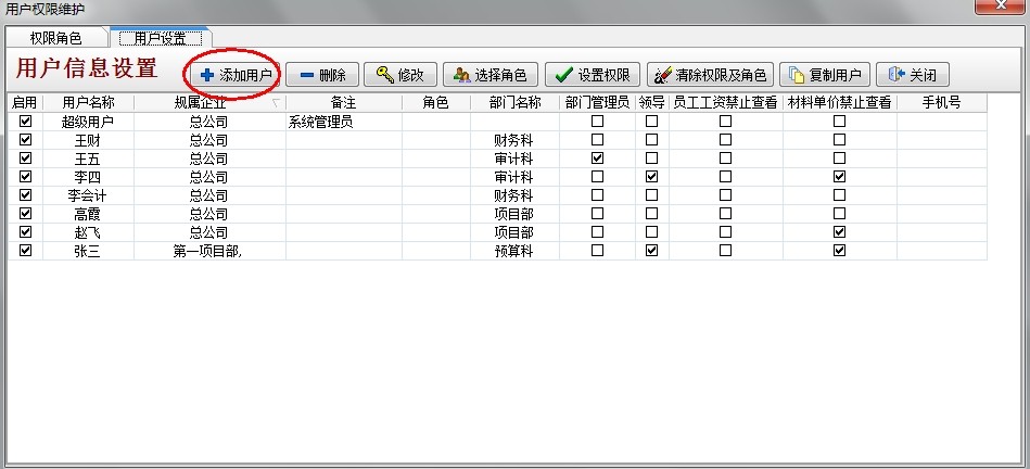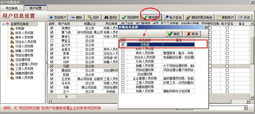 其他人員同樣的設置,對于相同部門權限相同的人員賦予同樣的角色即可。